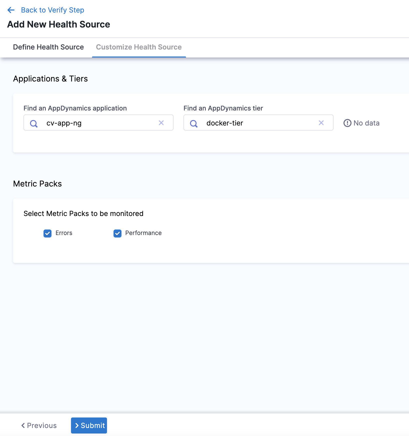 In Select health source type, select AppDynamics.
