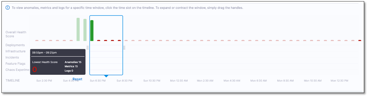When a metric breaches the Fail-Fast Threshold, you can see the impact on the service health dashboard, as detailed below.