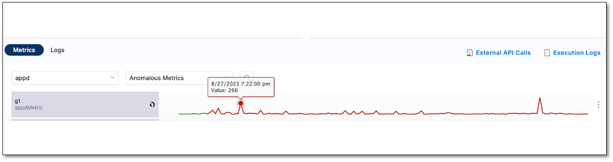 Within the Metric tab, the graph associated with the breached metric is highlighted as anomalous during the breach period, vividly shown in deep red.