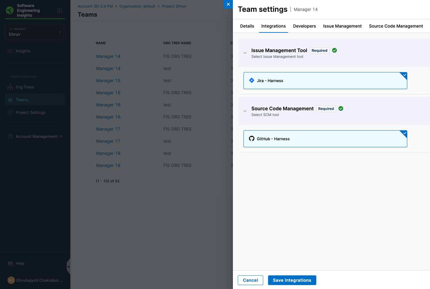 The foundation of Harness SEI is the account-level Integrations setup by the SEI Admin. These integrations must be configured before importing developers or creating Org Trees.