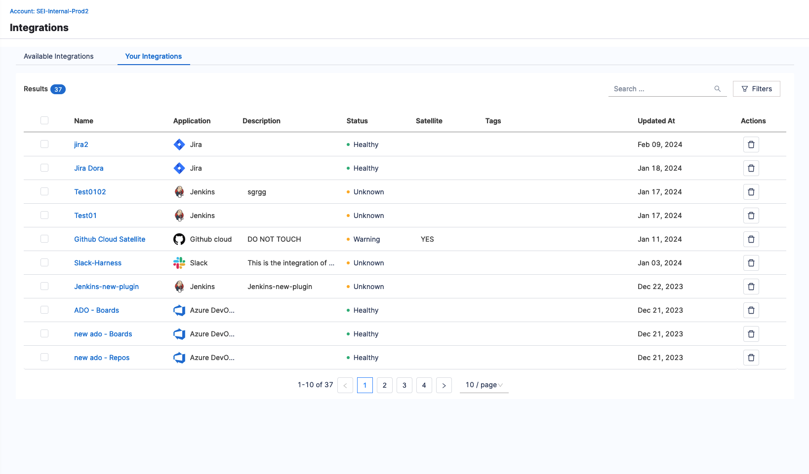 The My Integrations tab displays a list of your configured integrations which you can use to search or filter them.