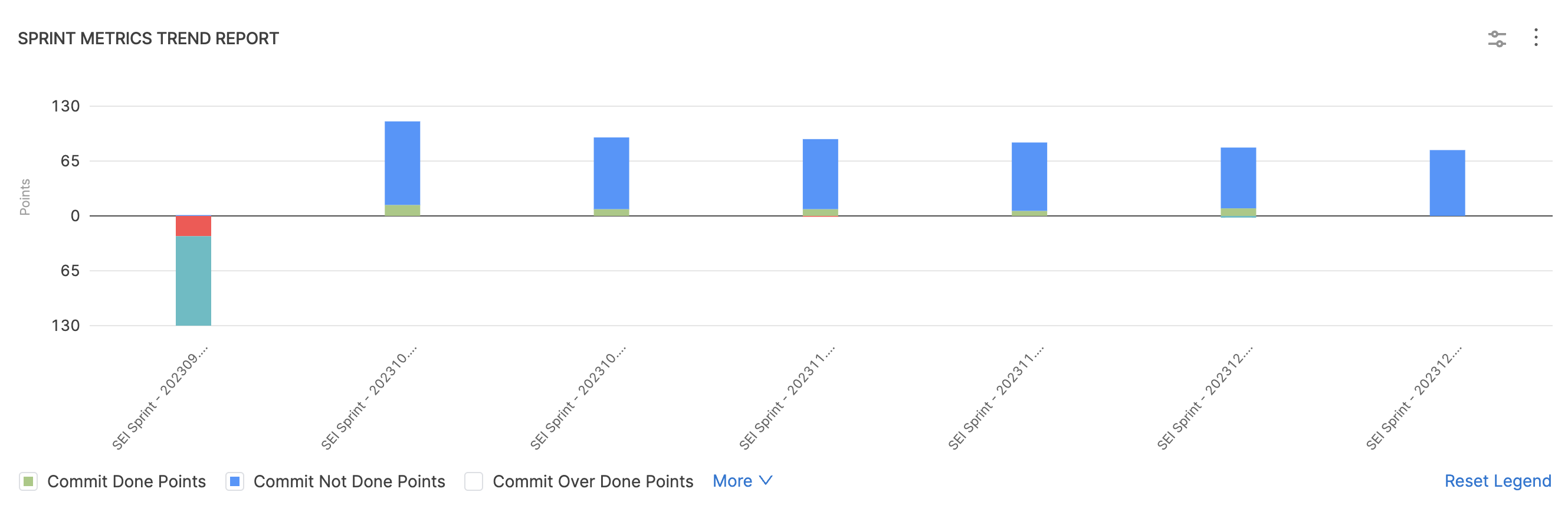 The Sprint Metrics Trend Report is recommended for visualizing a time series trend of these metrics to help engineering managers understand how the respective sprint metrics has evolved throughout various sprint cycles.