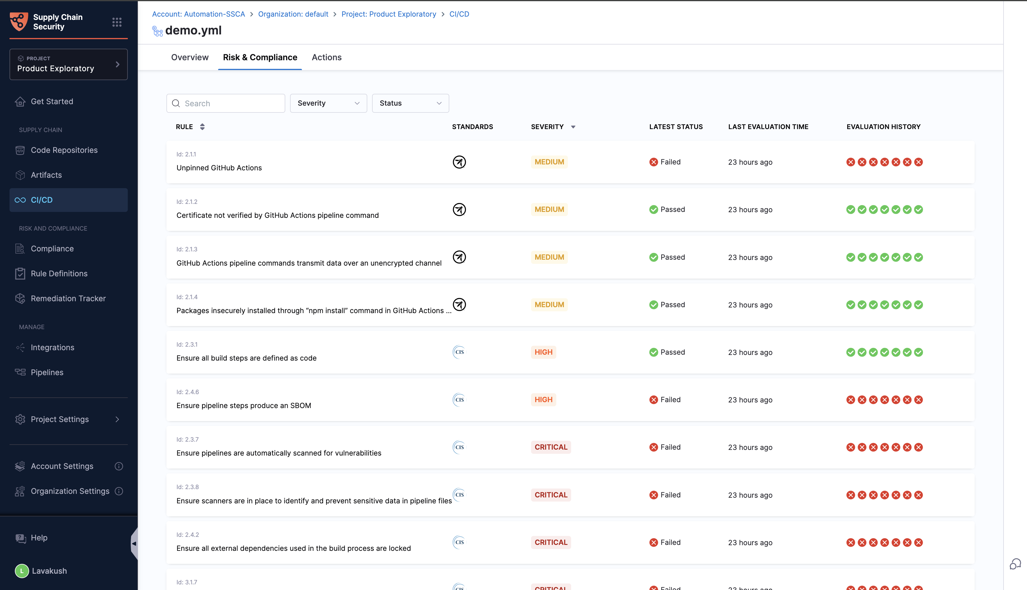 For a complete overview of your supply chain's compliance posture, refer Compliance Summary documentation.