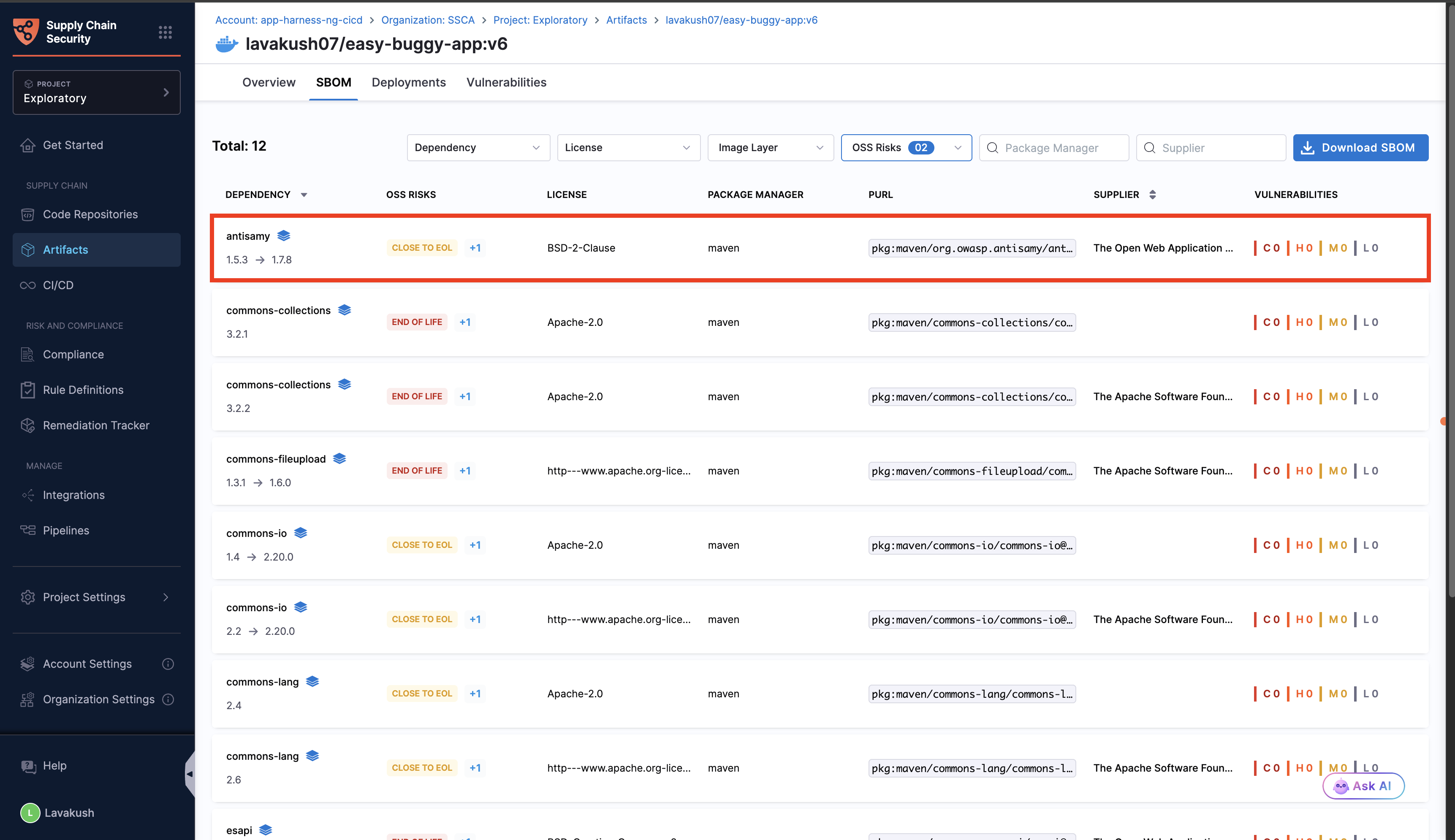 Open source software plays a critical role in the software landscape, with studies showing that over 90% of codebases contain open source components. While it accelerates development and innovation, it can also introduce security risks if not managed carefully. By assessing the components listed in your Software Bill of Materials (SBOM) against OWASP Top 10 risks helps to uncover risks such as outdated, unmaintained or end of life components, ensuring your OSS dependencies remain secure, reliable, and up to date. Running OSS risk checks plays a vital role in strengthening your software supply chain and maintaining trust in your applications.