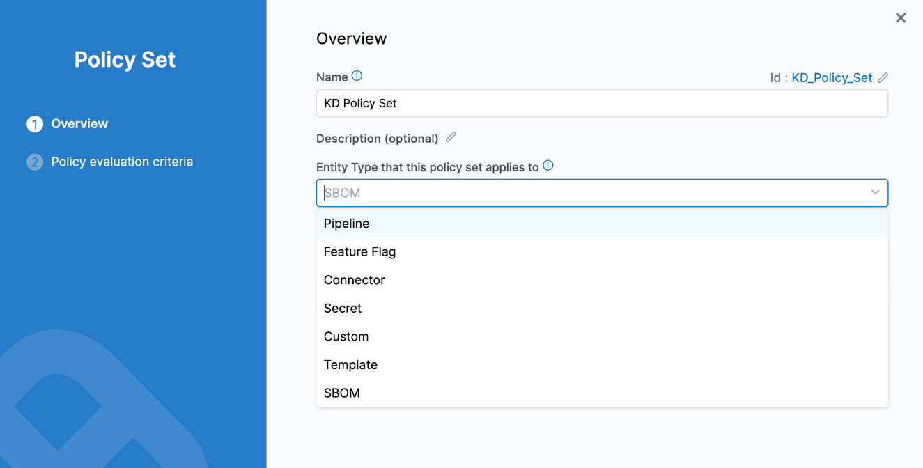 When creating a policy set for SBOM, set the Entity Type to SBOM.