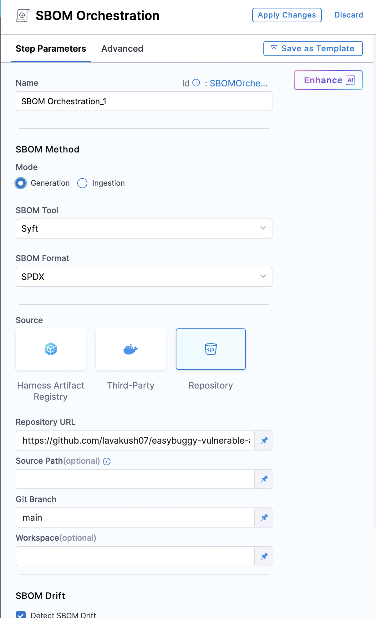Configure SBOM Drift