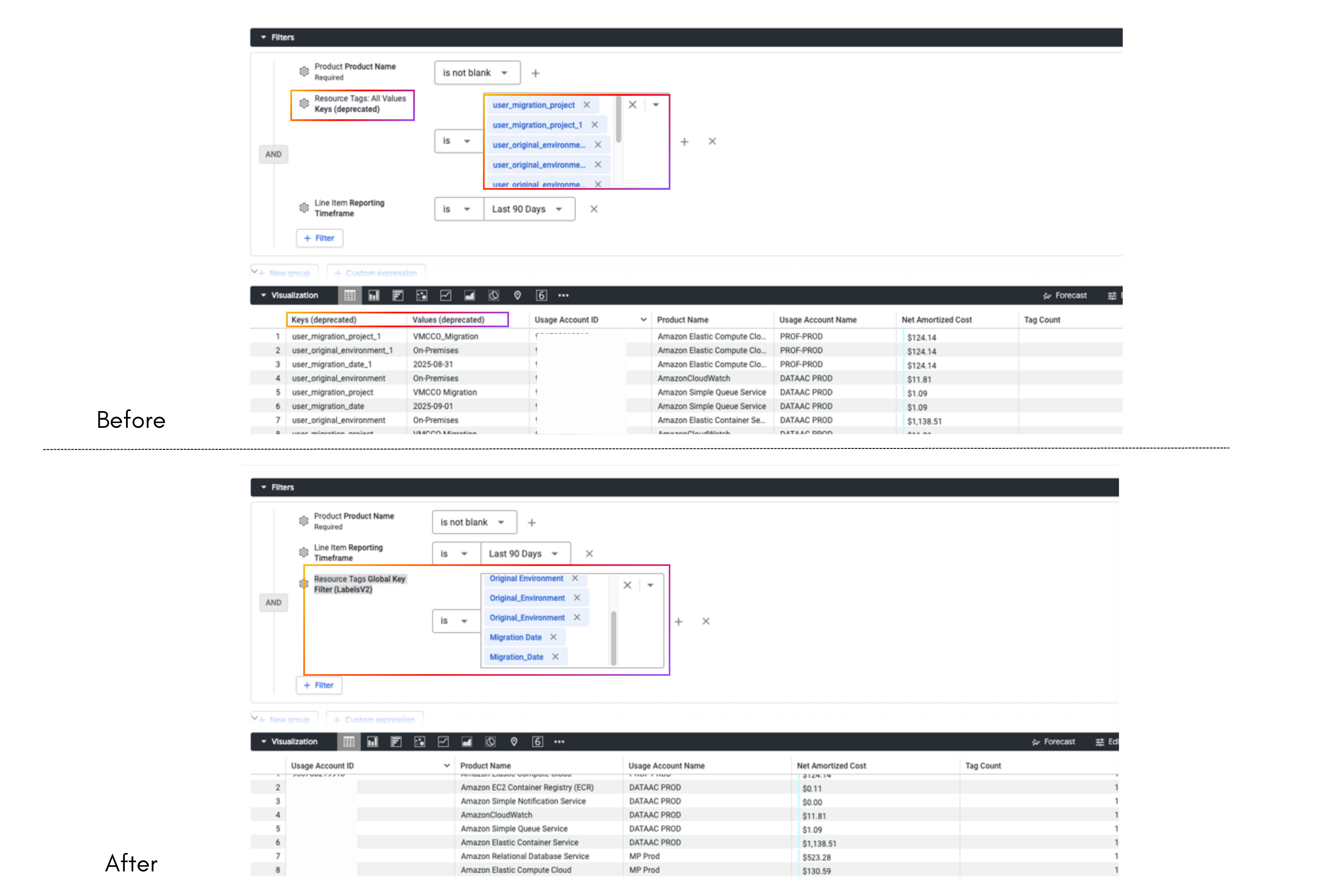- We identified and resolved an issue affecting Cost Category rules that use the NOT_IN operator. When a rule was configured to exclude specific values, the system was unintentionally also excluding line items where the field value was empty or undefined.