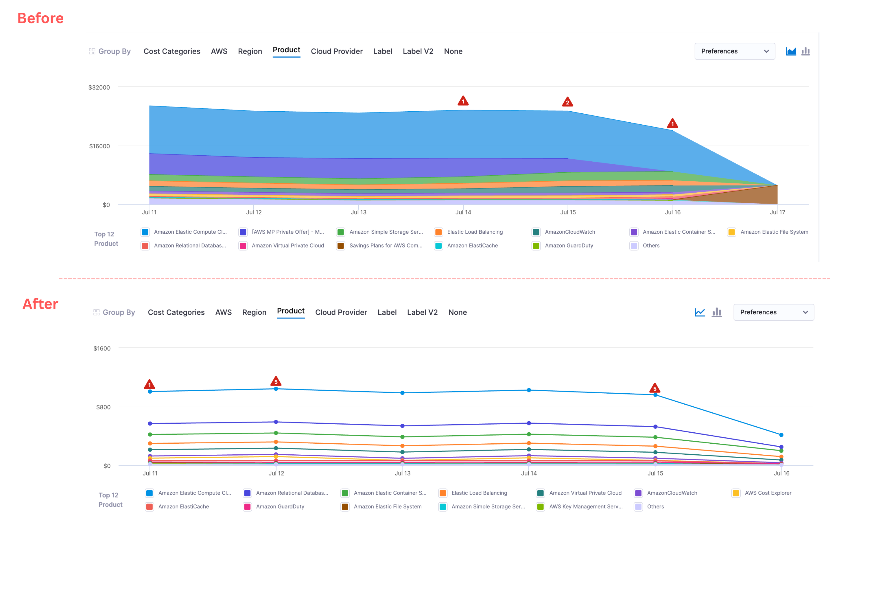 - Improved UX and consistency across the Anomalies home and drill-down pages. Spend metrics were renamed for clarity, Expected Spend and % Change were added, layouts were simplified to reduce visual noise, and date comparisons and spend calculations were corrected. We also fixed several long-standing UI issues (multi-cloud sorting, table labels/layout, missing tooltips, and comment ordering) to improve reliability and usability.