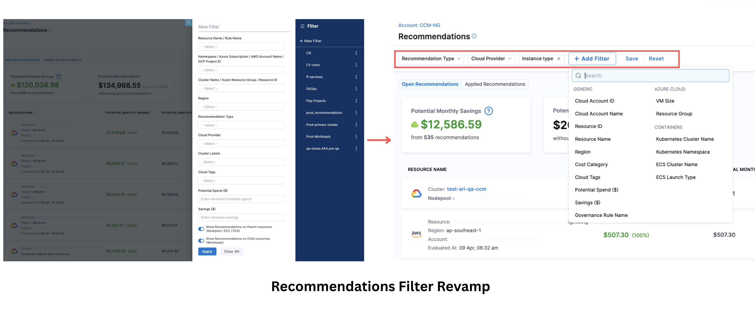 - Refresh recommendation resources and instance details (CCM-8720)