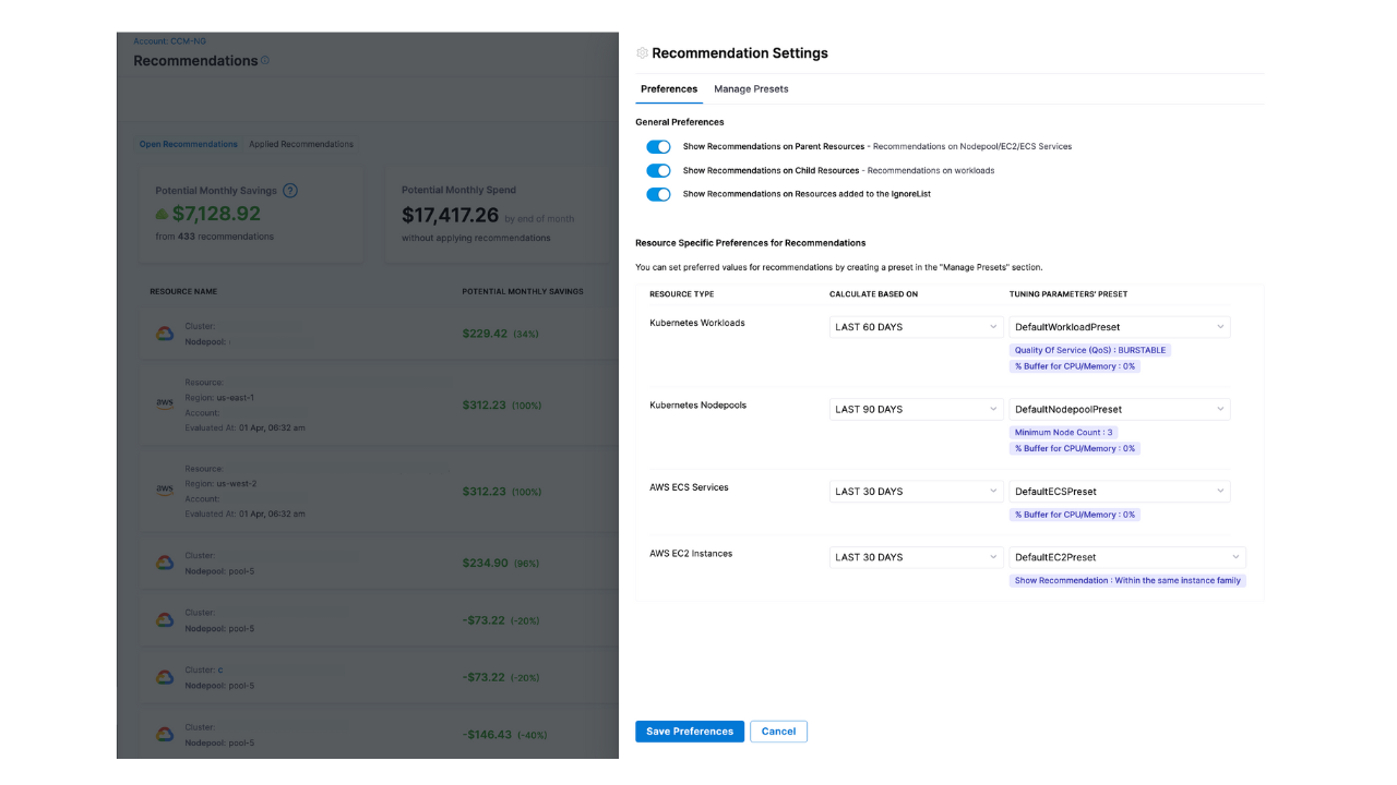For more information, refer to Optimize AWS ECS Costs with Recommendations.