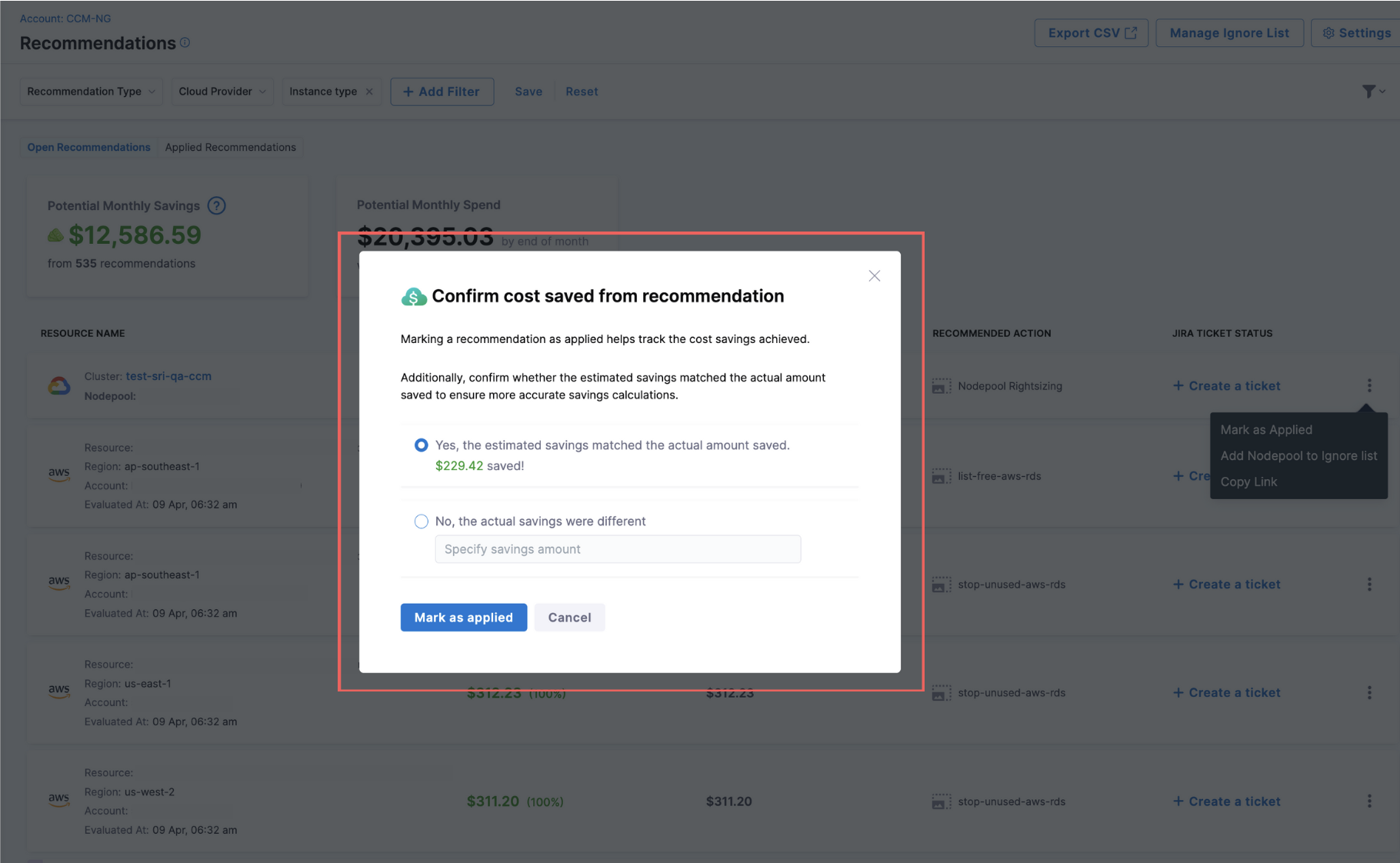 We were showing $0.00 recommendation savings for ECS. Now only recommendations with minimum savings amount > $1 are shown on the list page.