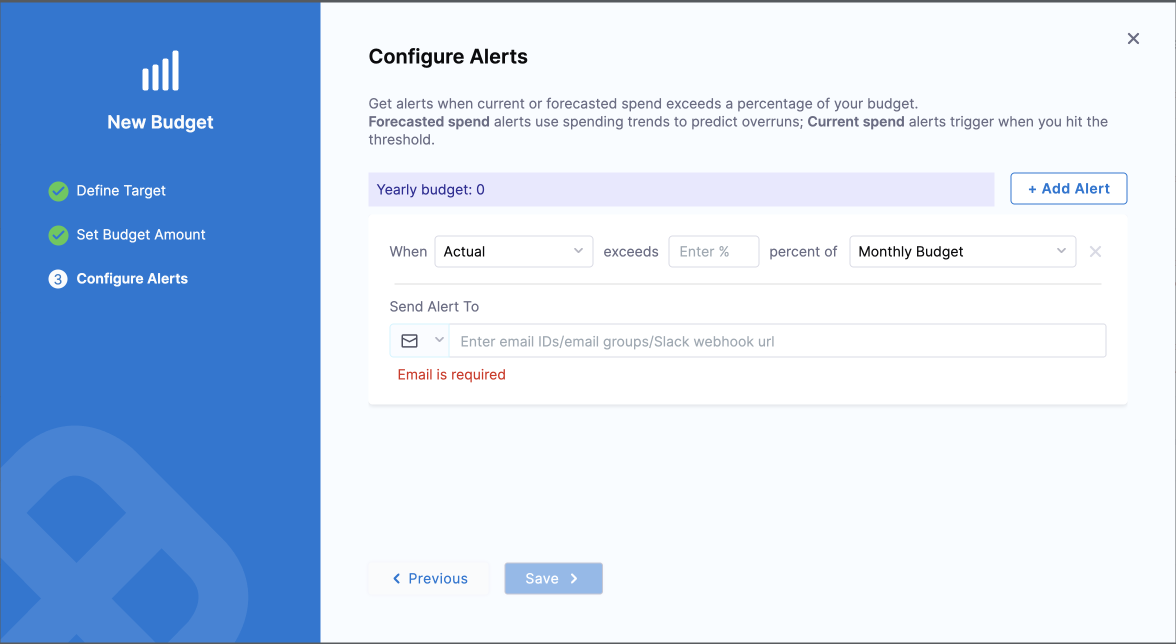 - Daily budget alert emails now display the date the cost was incurred instead of the alert generation time, ensuring accurate context when cloud cost data arrives with a delay.